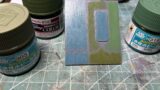 このままではただ白いだけなので、エナメル用薄め液だけを含ませて、軽く拭きとった筆で滲ませていきます。