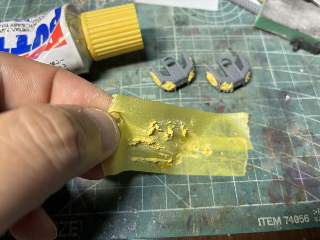 余ったパテ毎マスキングテープをはがして捨ててしまえば、後片付けも簡単!!