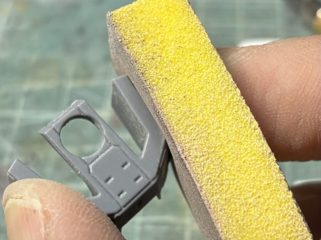 固まったらヤスって面を整えます。切削性もとてもいいので、400番くらいでサクッと、600番くらいで整えればあっという間に完了です!ある程度はデザインナイフで削ってもいいです。